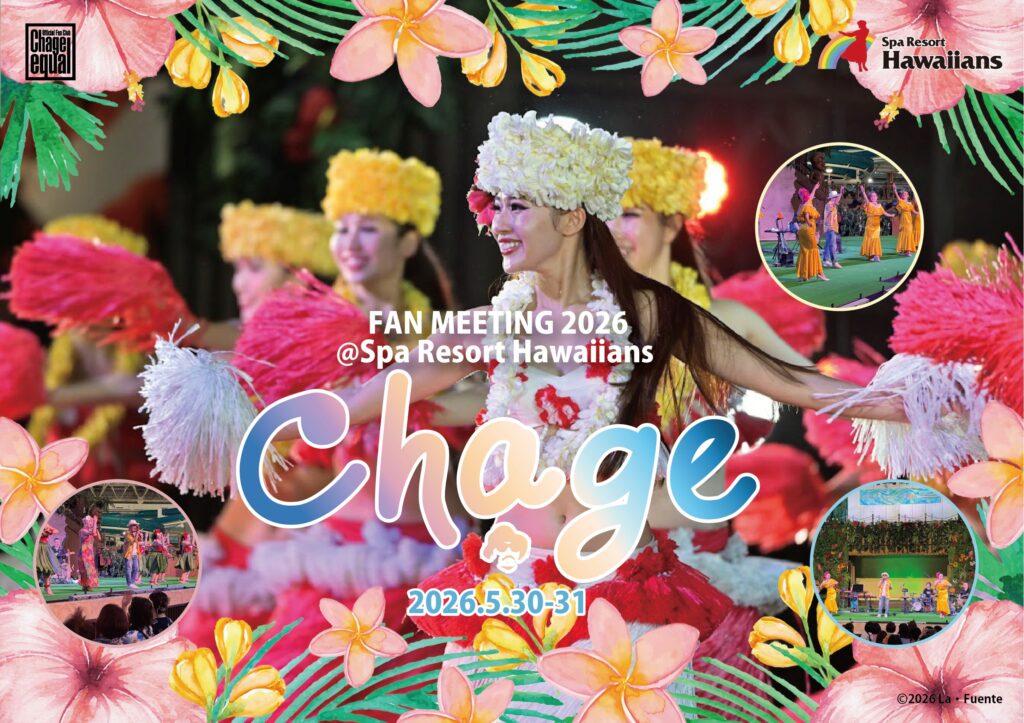 2026年5月30日(土)~31日(日)Chage FAN MEETING@Spa Resort Hawaiians オフィシャルプラン 2025年12月20日(土)~21日(日)Chappyとハイファイブ!2025年のありがとうChage FAN MEETING 2025
